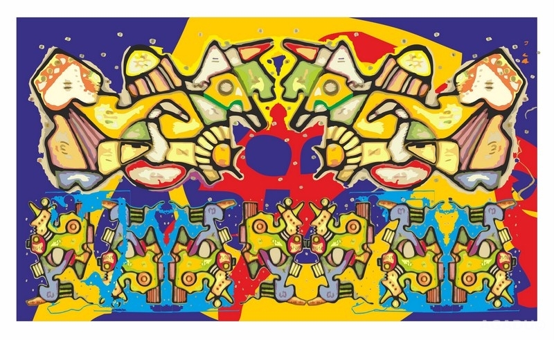 producción de Barretto. La base de la creación se encuentra en una charla, en un momento de meditación compartida; un encuentro donde quedan plasmados como esbozos los estados emocionales en servilletas. El proceso posterior lleva esas impresiones a un formato mayor y en lo lúdico de la propuesta es el color que irrumpe y da vida a estos grabados.