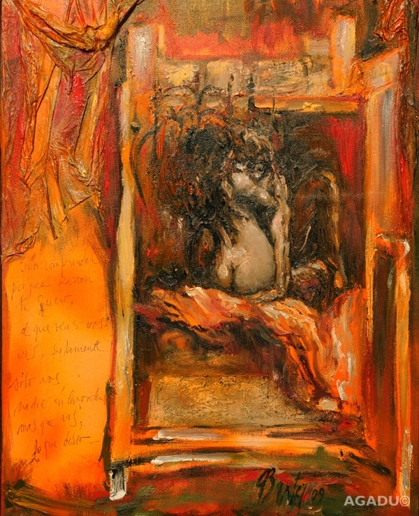 Su obra es expresionista, matérica, figurativa, con clara tendencia al surrealismo.